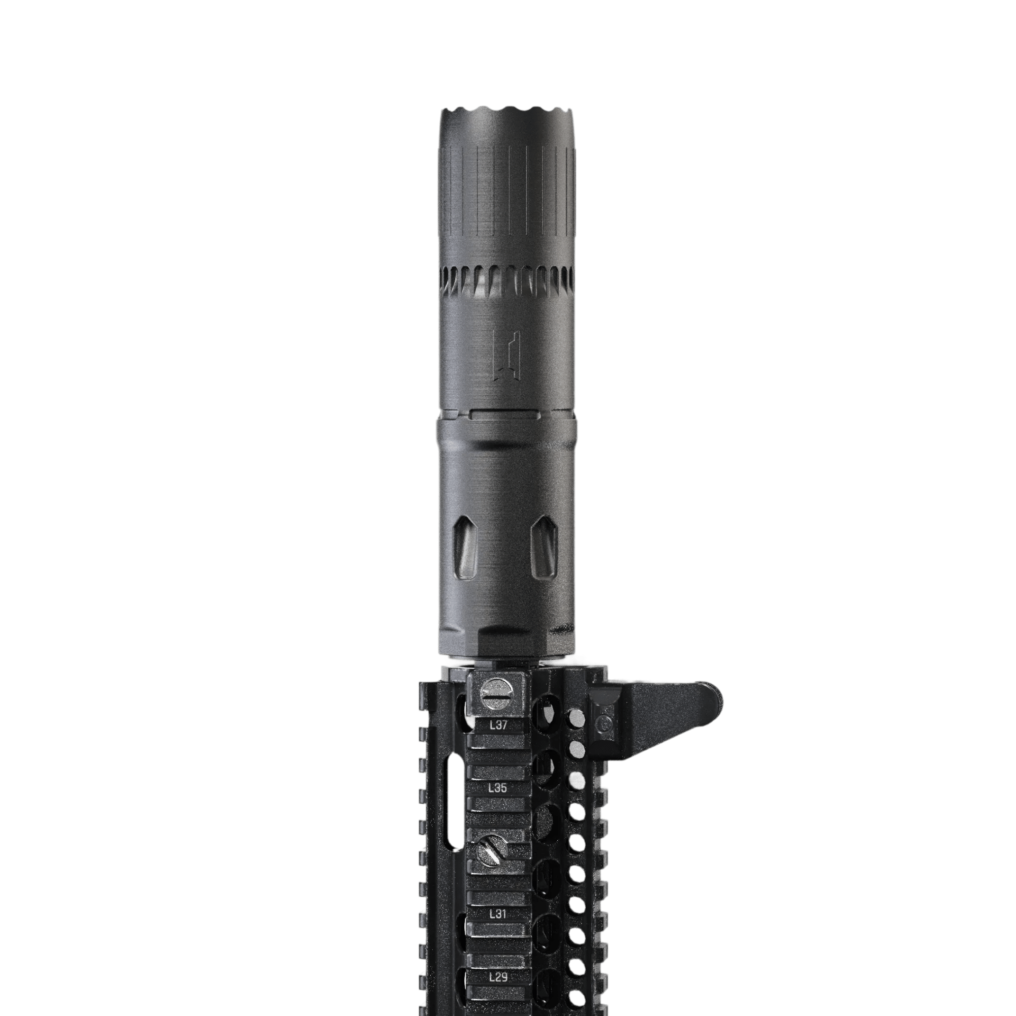 The EXO 5.56 is the first suppressor of its kind to utilize our proprietary Ambient Intake™ System. Unlike flow-through suppressors, this all-new category of suppressor technology features intake channels that harness ambient air to drastically reduce post-shooting temperatures, decimate the report of your rifle at the muzzle by ~35dB’s, and materially mitigate unwanted blowback.